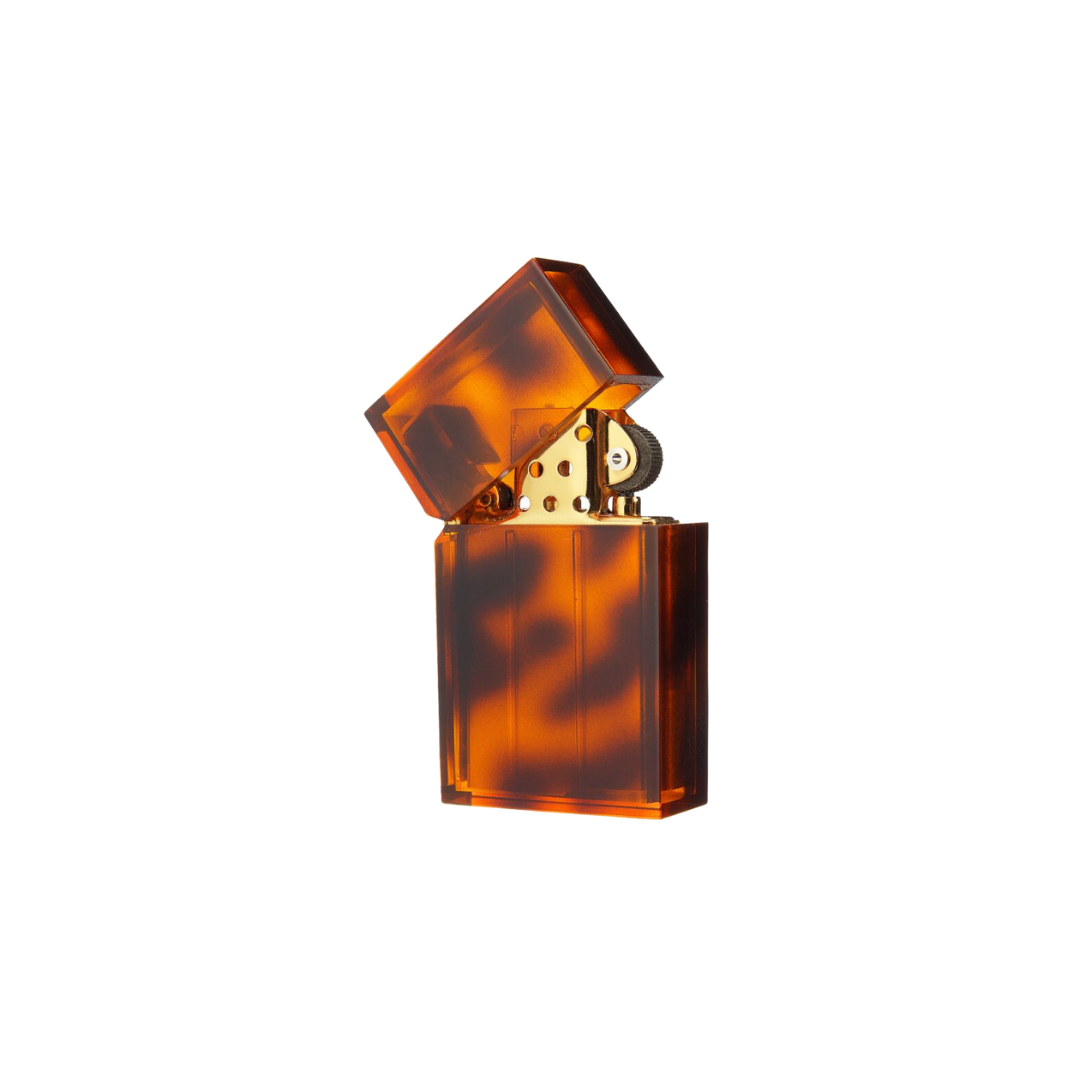 2008 saw the introduction of the Hard-edge Marble, which reproduces a tortoise pattern on the Hard-edge, using its angular surfaces as its canvas. The patterning on the translucent body are spray-painted by hand in multiple layers using “Floated” stencils, then polished to perfection. These mottled gradations are never exactly the same, and are unique to each lighter—creating depth and an interplay of color, light, and material. The lighter is as pleasurable to the eye as it is useful. Handcrafted from beginning to end in Tokyo.